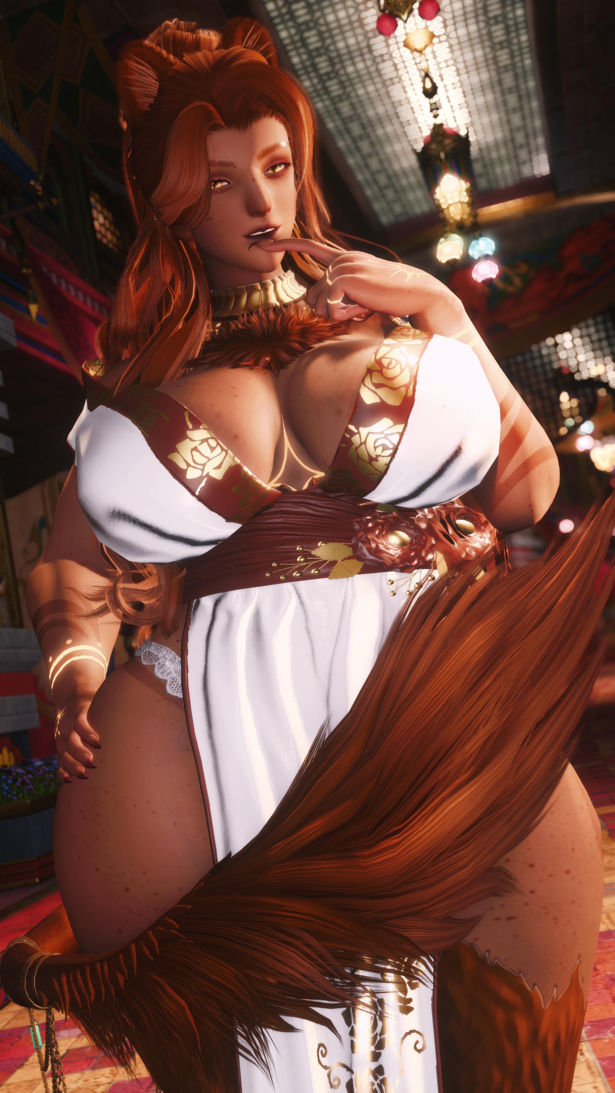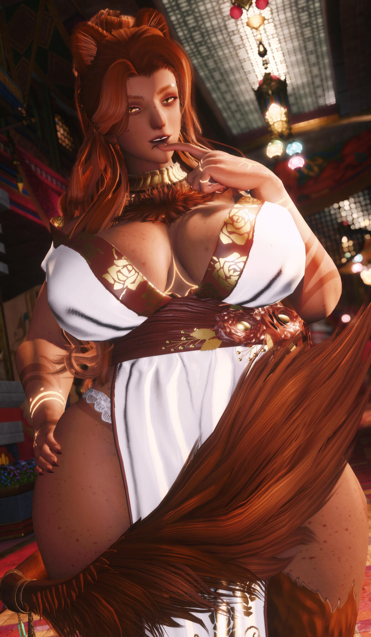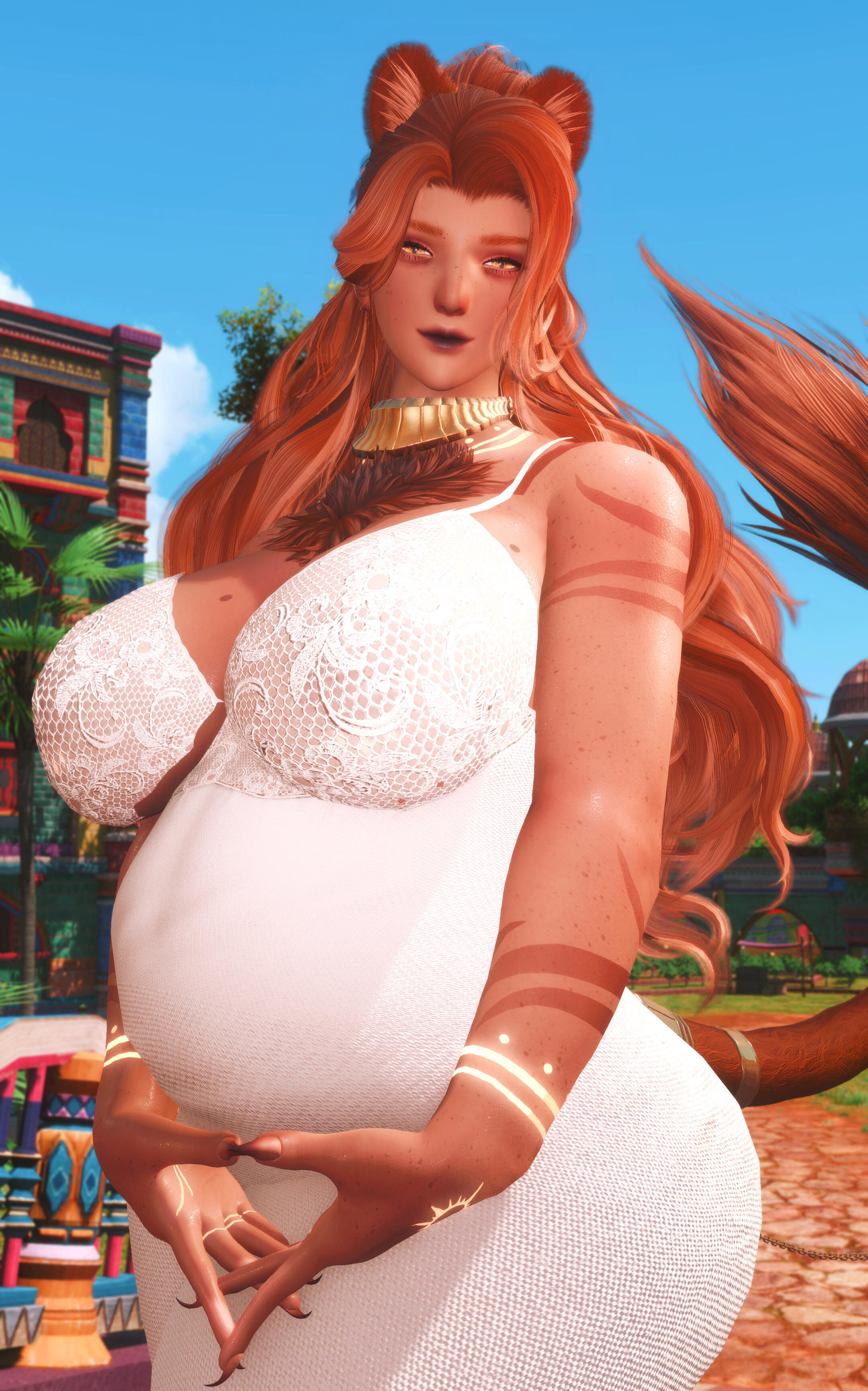 MARKINGS Old clan markings from her half-miqote heritage, and bright, golden glowing markings upon her wrists, chest, stomach and back.